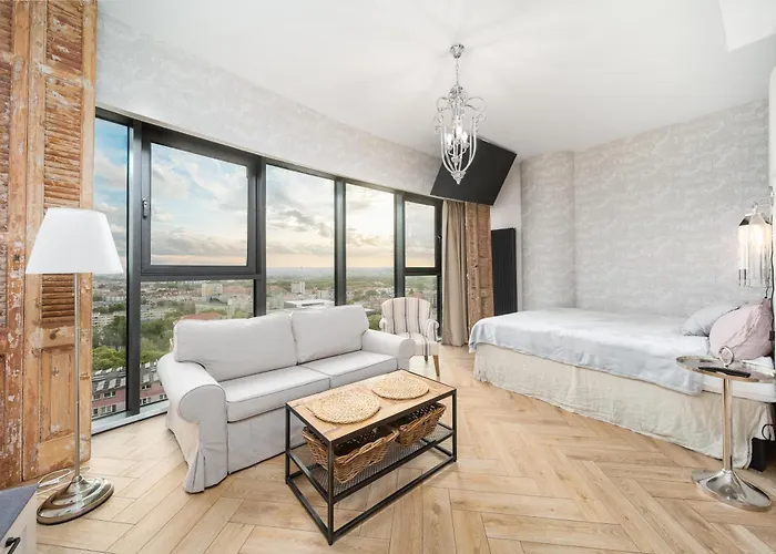 The family-friendly 25 m² Hanza Tower Apartment No 1704 - 17Th Floor, Swimming Pool, Jacuzzi, Viewing Terrace Szczecin is only a 14-minute stroll from Muzeum Techniki i Komunikacji w Szczecinie in the Srodmiescie district and welcomes guests with a hot tub, a sauna, and an indoor pool. The 1-bedroom apartment is located right in the centre of Szczecin, a short way from Papugarnia Carmen Szczecin.